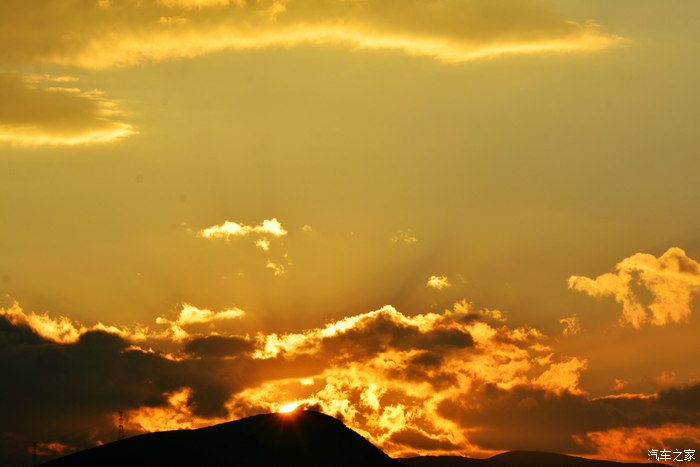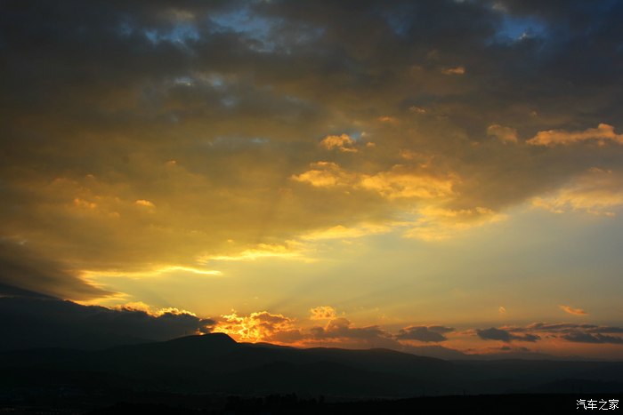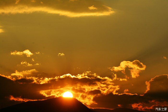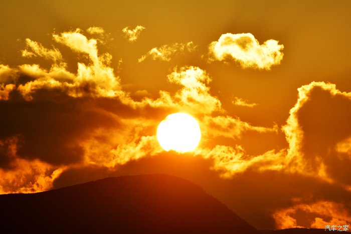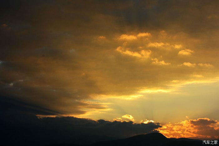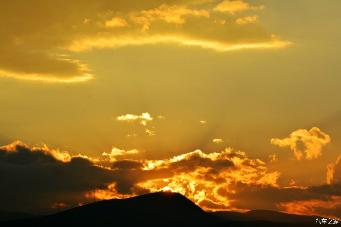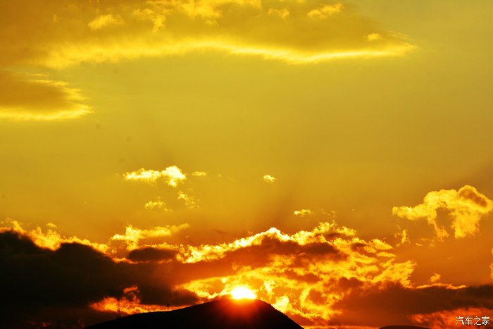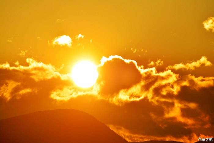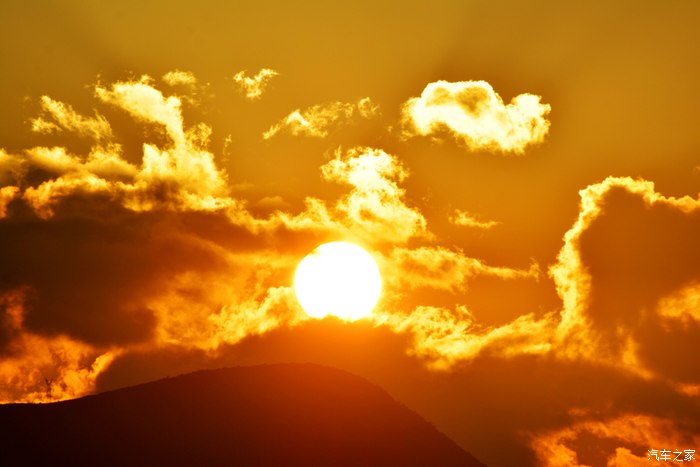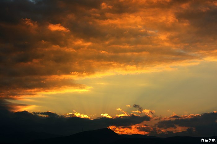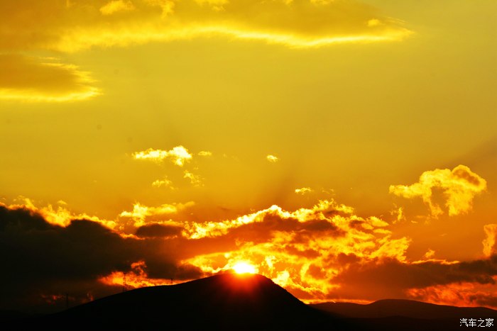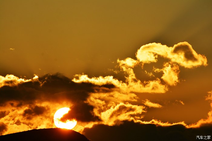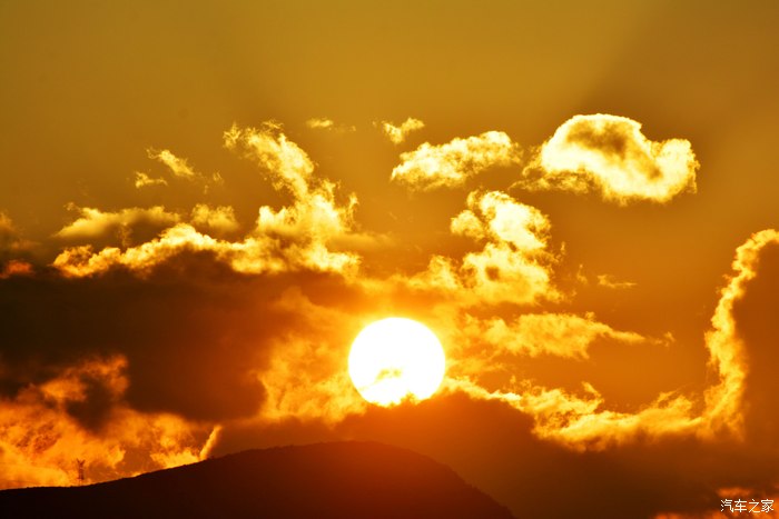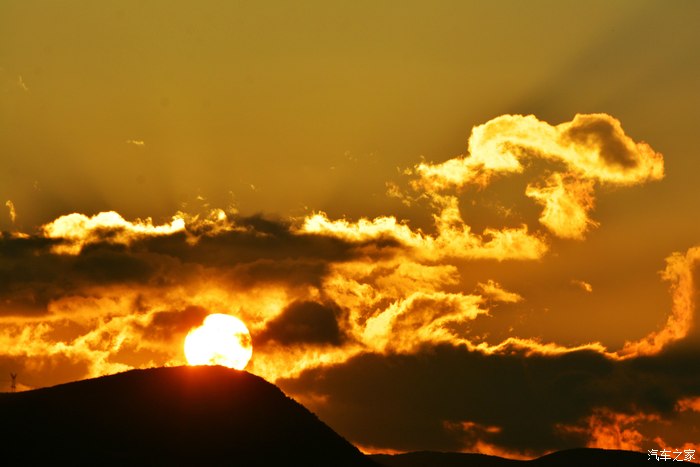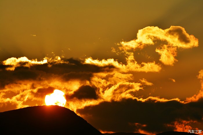 2,小山顶山的这片乌云,似乎还想极力地阻挡这即将喷发出的一团火焰。。。。。。