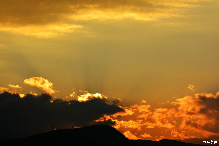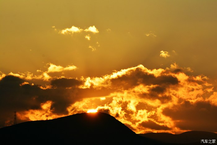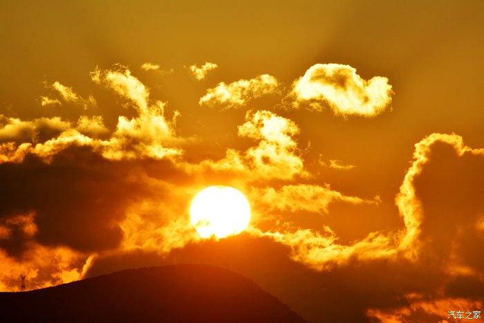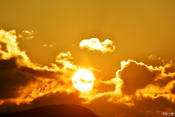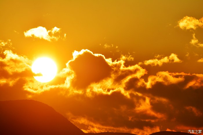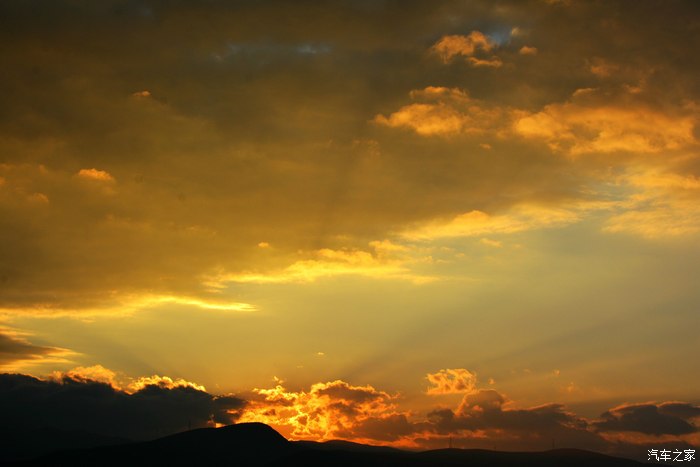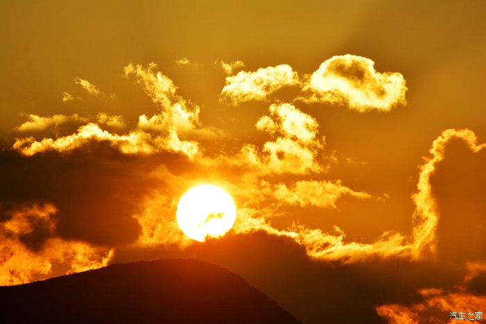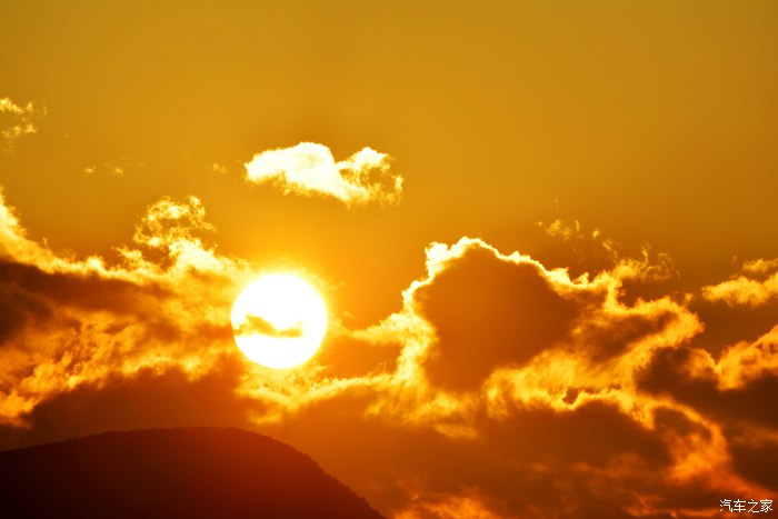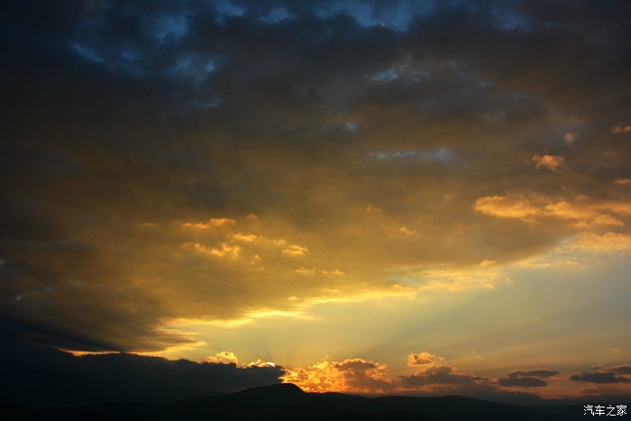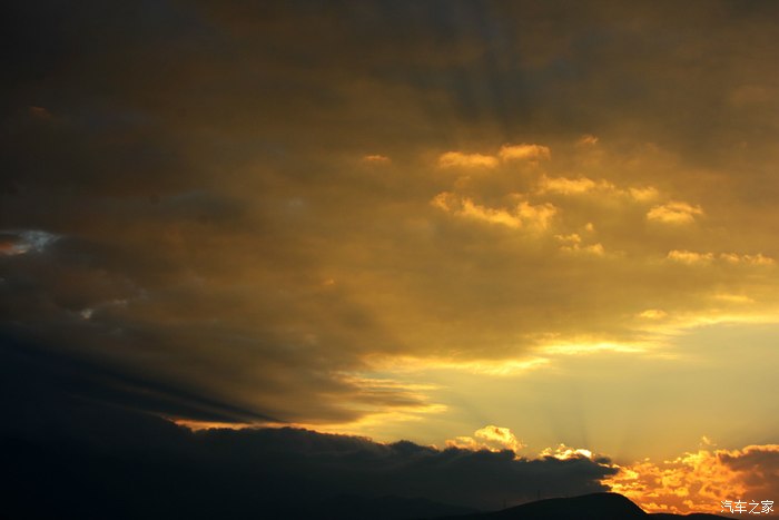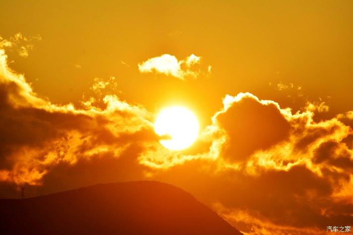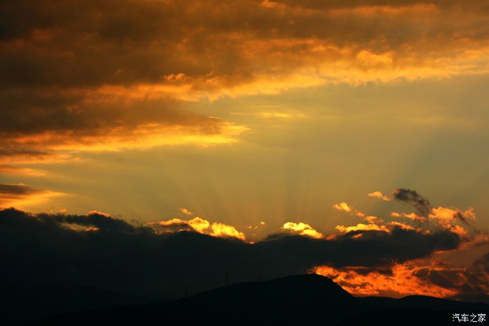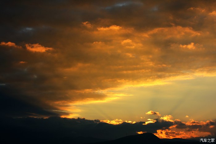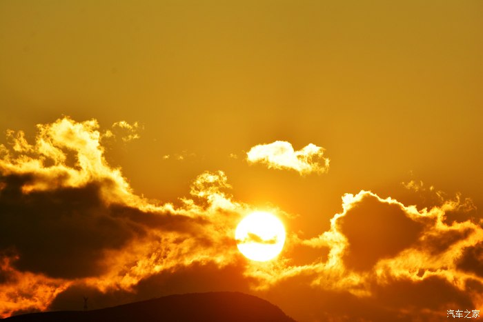 2,小山顶山的这片乌云,似乎还想极力地阻挡这即将喷发出的一团火焰。。。。。。