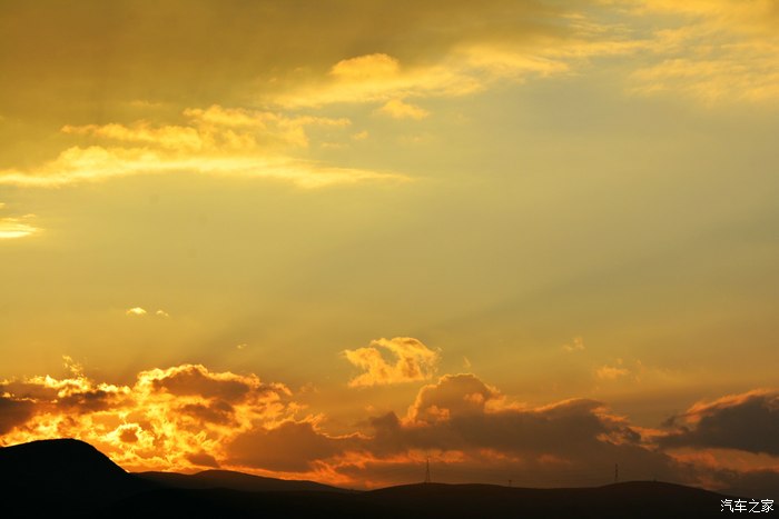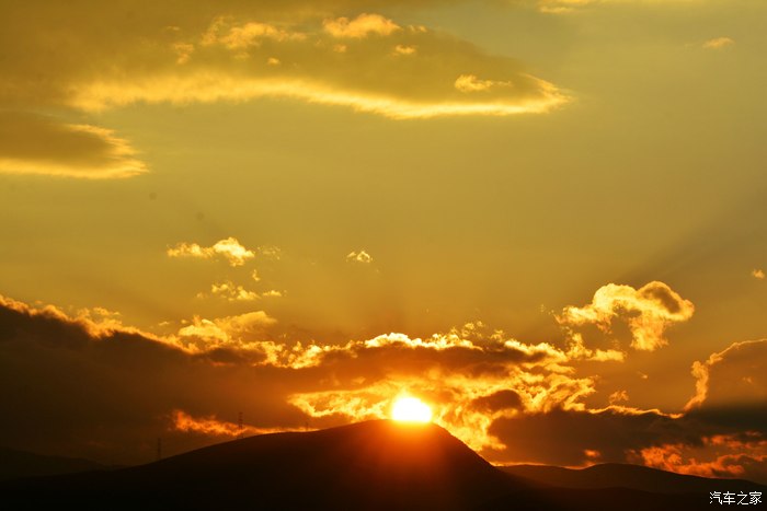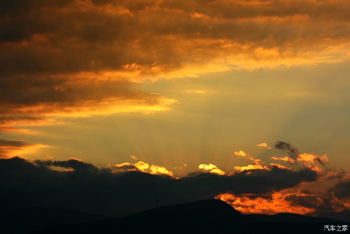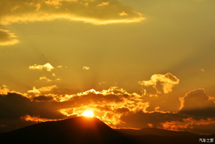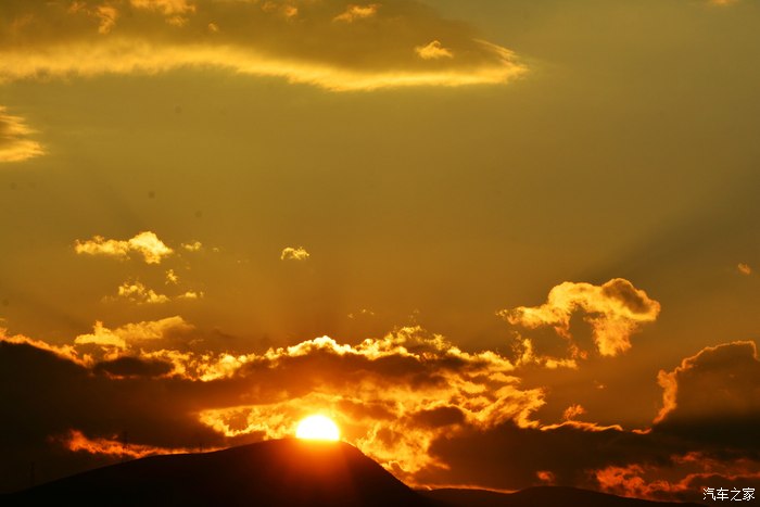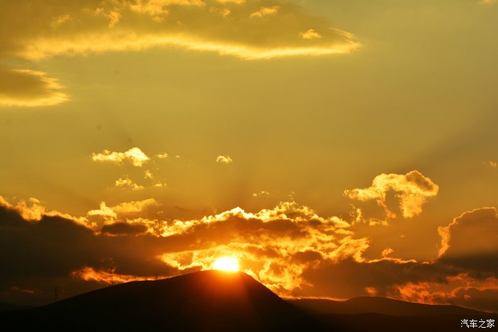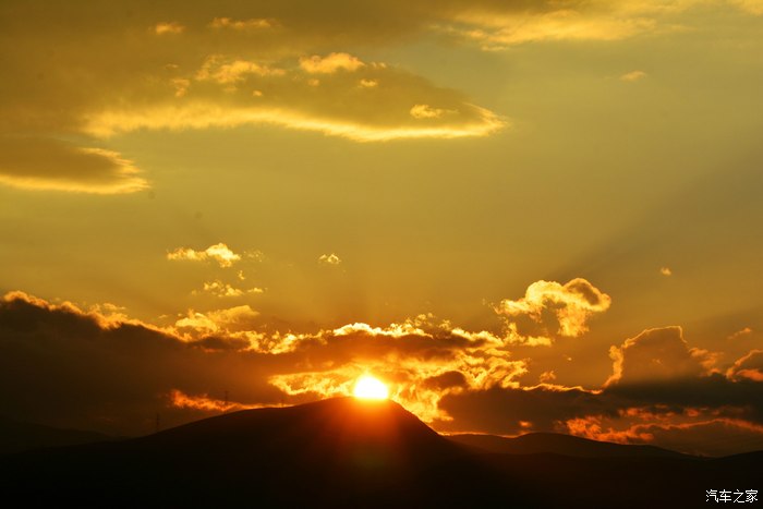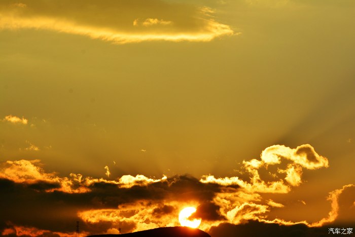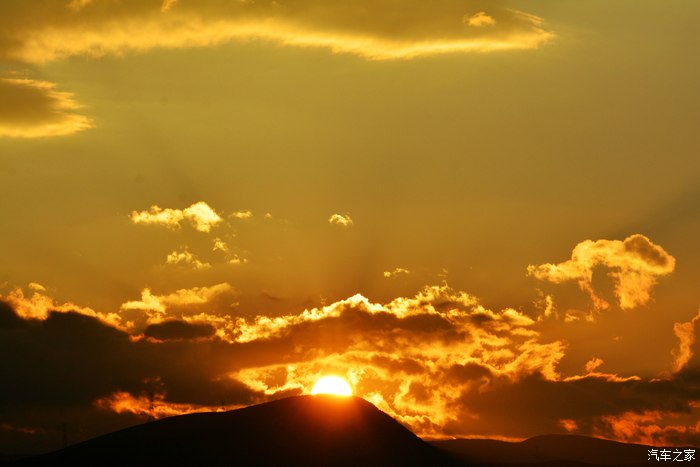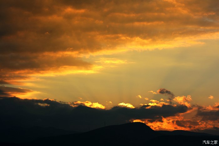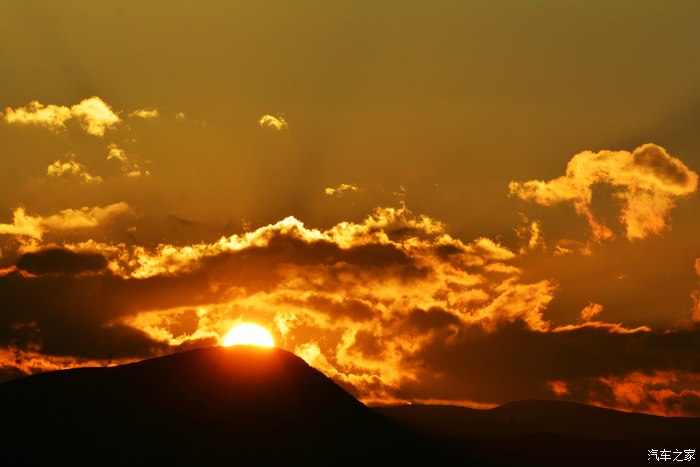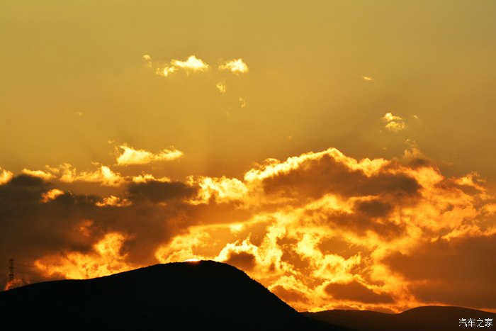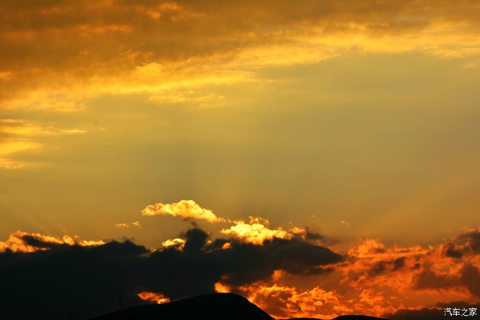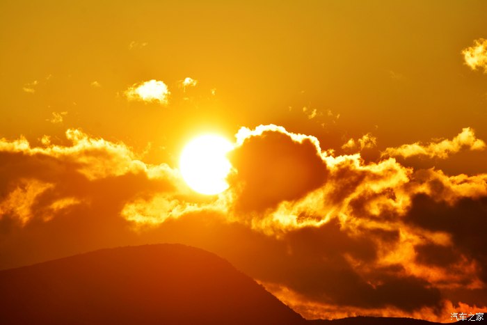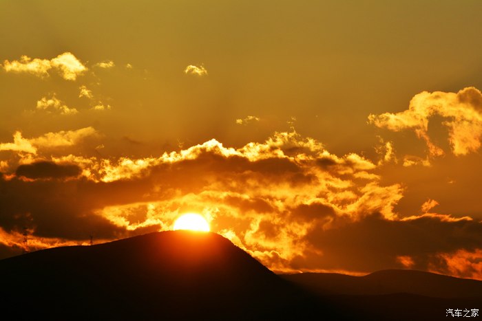 2,小山顶山的这片乌云,似乎还想极力地阻挡这即将喷发出的一团火焰。。。。。。
