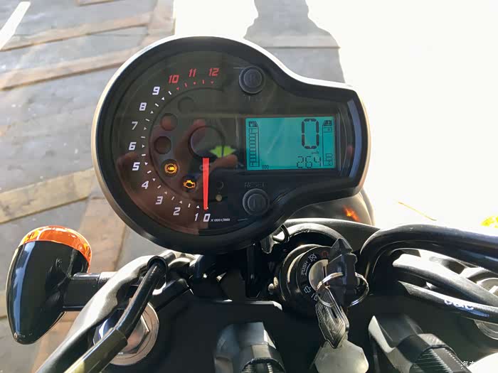 5、油耗方面表现也符合预期,油表显示不准确,标配的12.5升的油箱可以续航300多公里左右,我提车加满油骑行至264公里时油箱里还剩一格油。