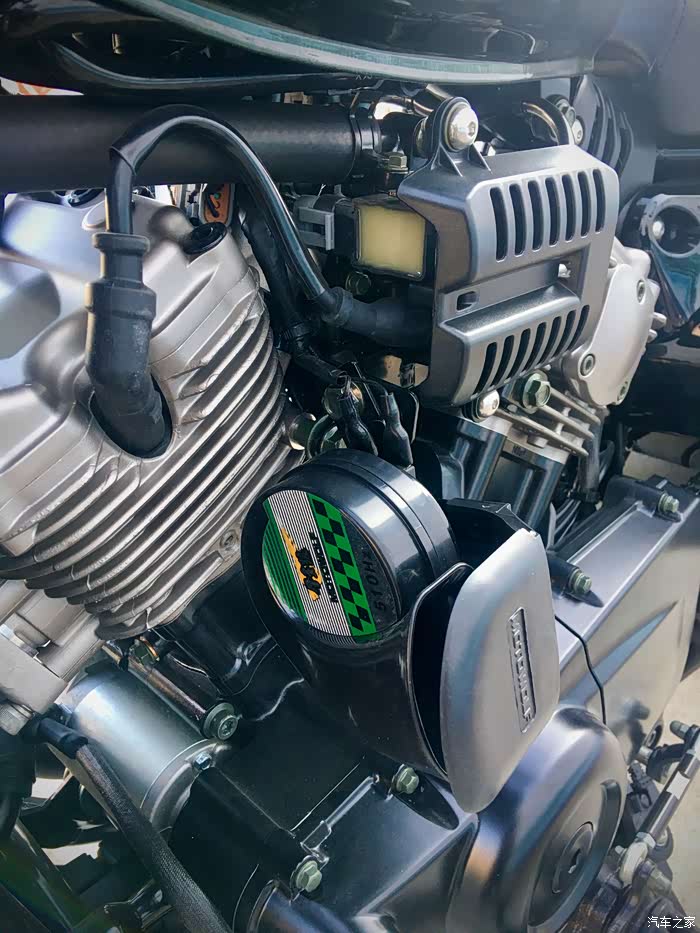整车做工不错,硕大的水箱装饰护板颜值不错,后面设置了一个不小的风扇。发动机散热也很不错,2小时长途骑行也不烤退。
