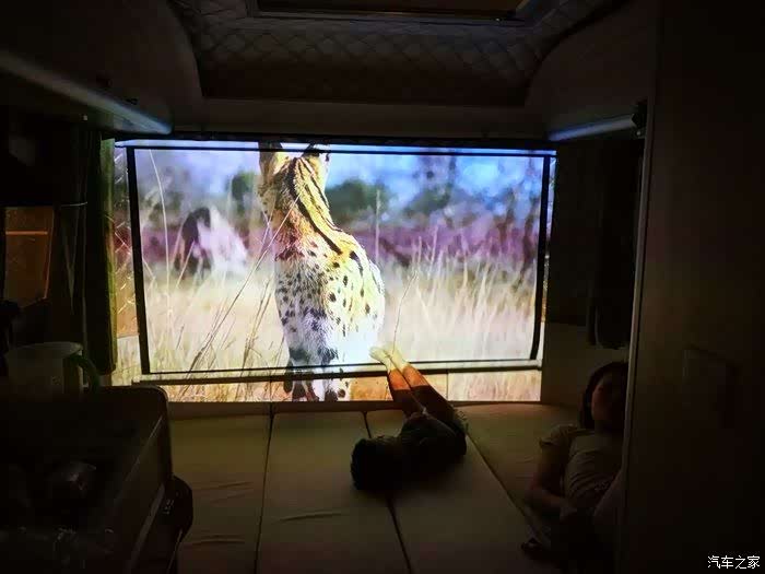幕布挂在车尾,威海行就在看了。投影仪的固定,以前都是用三脚架,这次在三亚湾的时候,才临时用吊装支架,但是距离不对,以后再调吧。缓缓劲儿以后再折腾吧。