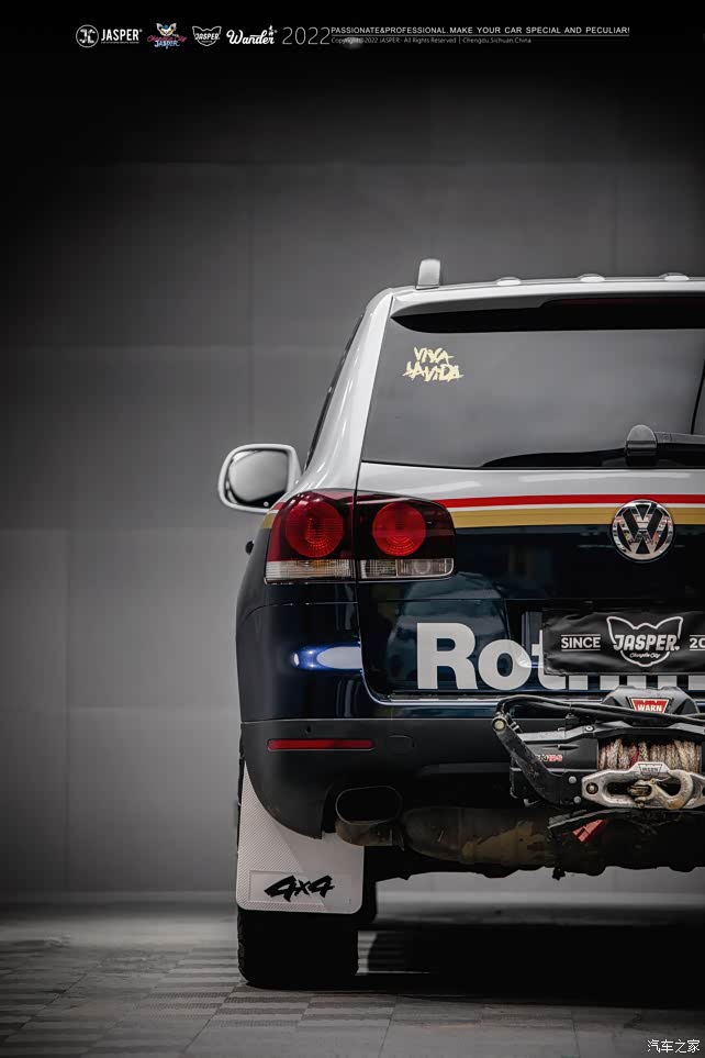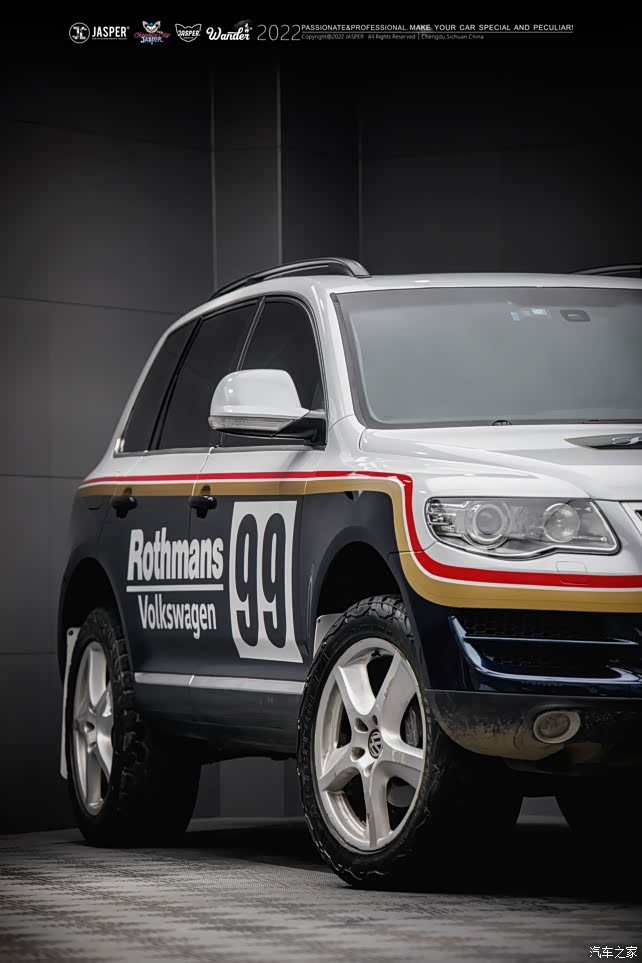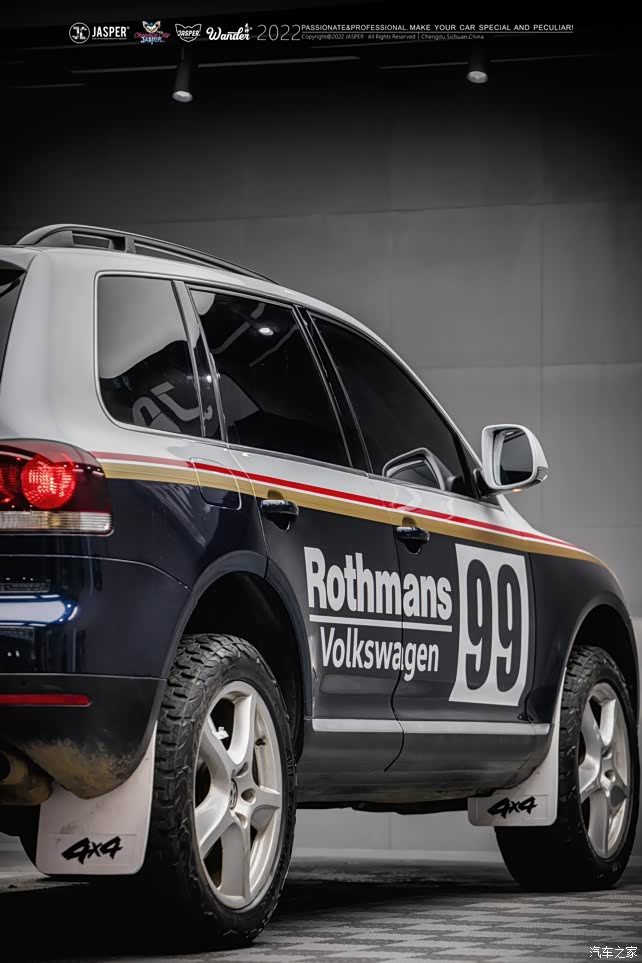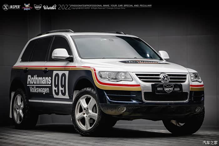 首先,外观方面,我选择了直接贴车衣,这也是我买车前就想好的,因为我很喜欢乐富门的经典拉力赛车拉花,一直想做一套,途锐从各个方面来说都是最合适的,首先底盘,带有副梁的四轮独立空气电感悬挂,能保证高速稳定的通过砂石路面,再者外观这种圆润且有力的线条很适合玩乐富门拉力车的整体配色,AX顶级膜两大卷伺候!
