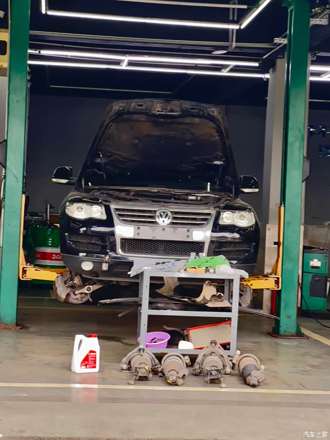 回我的城市的高速上就打好电话给熟悉的修理厂预约好熟悉的师傅,下高速直接进厂,详细检查一下,再制定整备的方案,前几台途锐我都是玩的素车,好像玩老途锐的都是玩素车,我这次买之前就决定要玩点不一样的东西出来,我要小小的改装一下,毕竟玩了十几年越野车的人,光玩素车是不能解渴的;