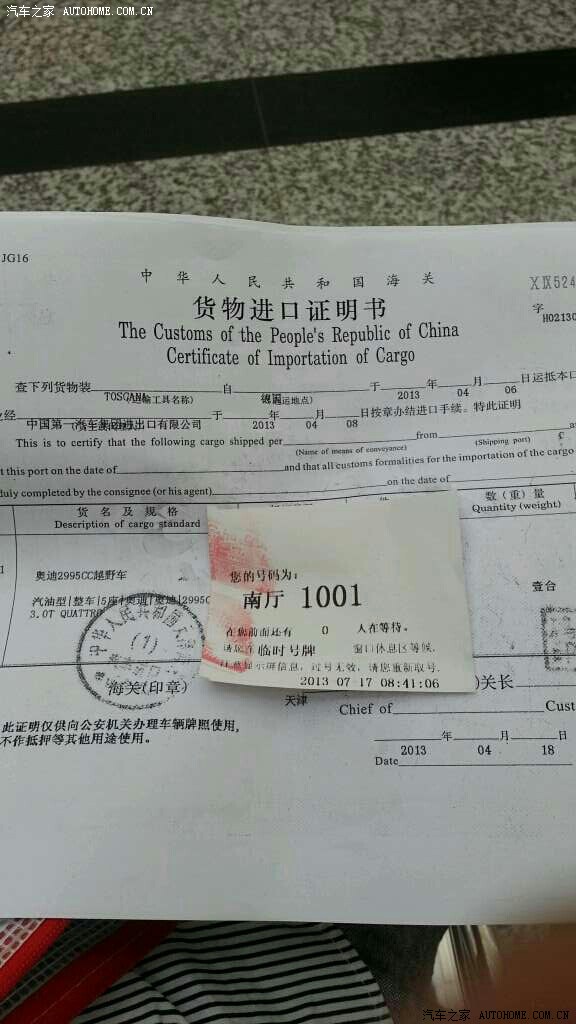 头一天去检疫局领关单,进口车都得办这个才能落籍。赶上这两天长春交管系统问题,暂时交不了购置税。。。