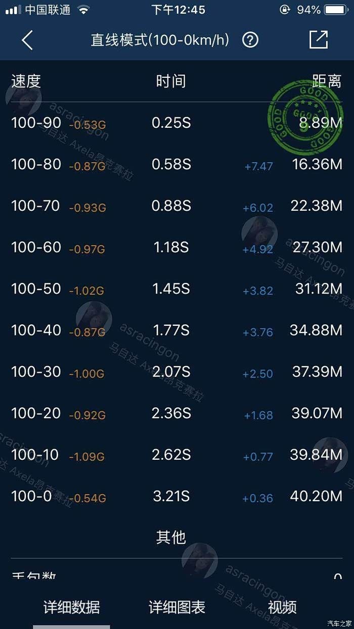 刹车制动未改,先试了原车的刹车,40米