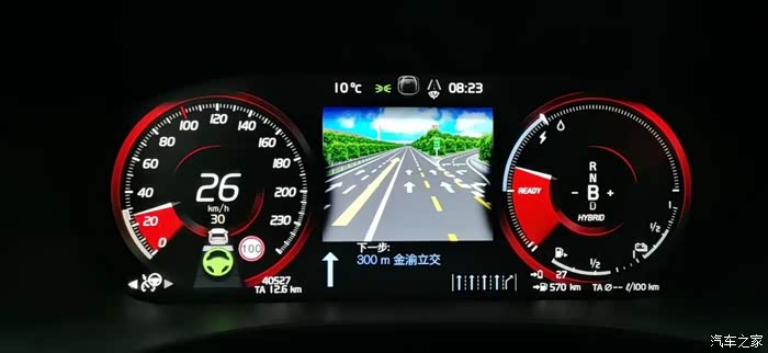 巡航辅助功能开启后,速度表下面会有绿色的方向盘说明功能已激活,方向盘上方有小汽车的图像说明探测到前方有车。