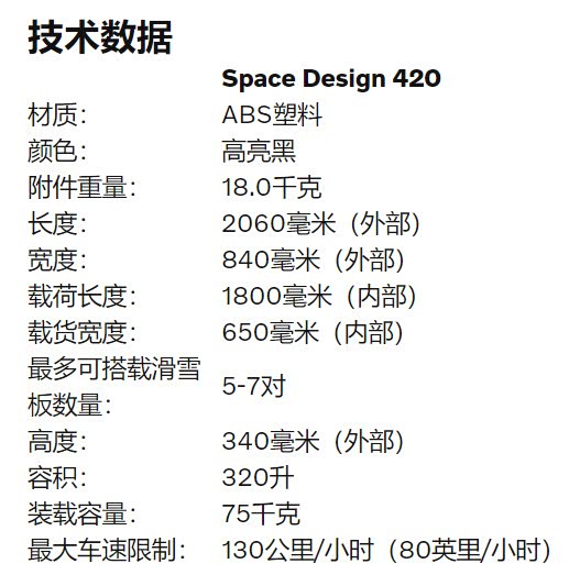 这次出行相比之前多了一套VOLVO原厂行李箱+原厂行李横杆,很多车友都对行李箱的风噪和能耗比较关注,我这个箱子是420型号,长度206厘米,宽度84厘米,高度34厘米,实用容积320L,最多可装载75KG的装备和货物,在行李箱中算是小个头的,所以造型相对流线扁平,前进阻力不大。