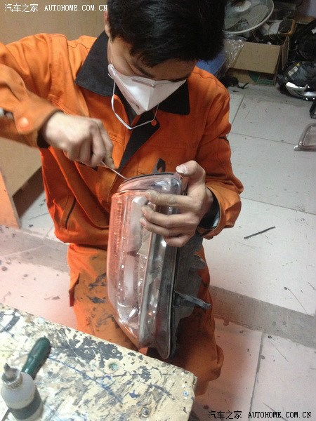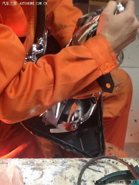 我原来一直看帖子,大多数的改装店,一直是把大灯放烤箱。今天师傅们不一样的拆法,局部烤车灯