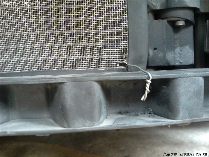 最烦的地方是这里:本来买的时候送了四条扎带,但是没用,不好固定,只好找铁丝来固定。下面这个位置没有孔,还是用电钻打了一个孔才好绑铁丝。