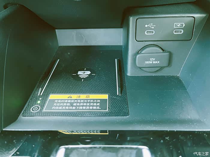 前排配有手机无线充电功能,这个还是非常好的,尤其是对于我这种马大哈来说,再也不用担心忘记带手机充电线了