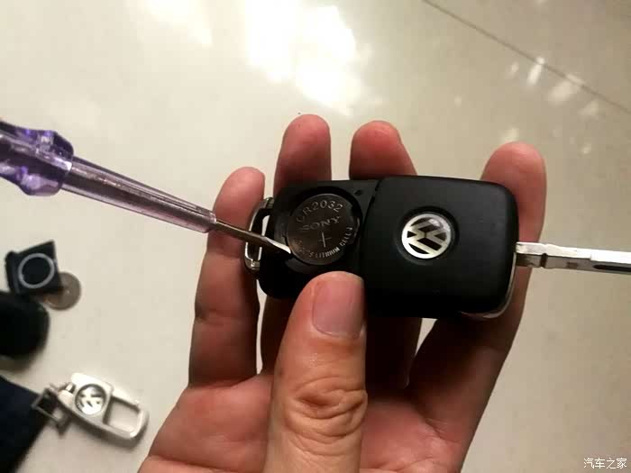 遥控钥匙是汽车使用最频繁的工具之一。每次开车、锁车都得用到。我这个人有一个坏习惯,锁完车不放心,还得再按几下,怕忘记锁车。时间久了,钥匙电池电量慢慢就耗光了。最近发现锁车、开车遥控距离只能在车旁边才能使用,汽车钥匙电池需要更换了。