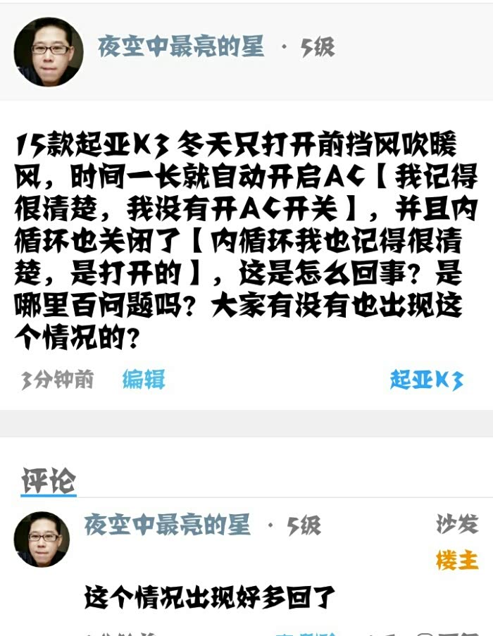 15款起亚k3 开前挡暖风,时间一长,自动开启ac开关