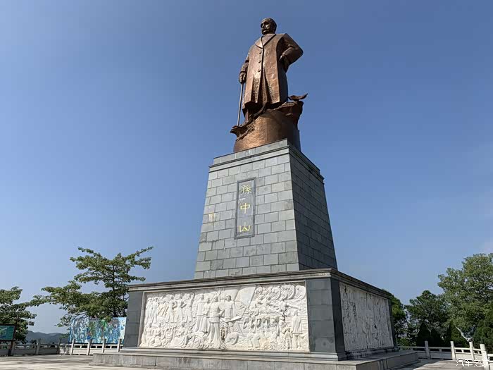 孙中山纪念碑为方体尖形花岗岩结构,高3.4米,四面皆有碑文,正面是“孙总理逝世周年纪念碑”,左右两面分别是“革命尚未成功、同志仍需努力”的总理遗训,后面是“钦县军政农工商学各界敬立”。