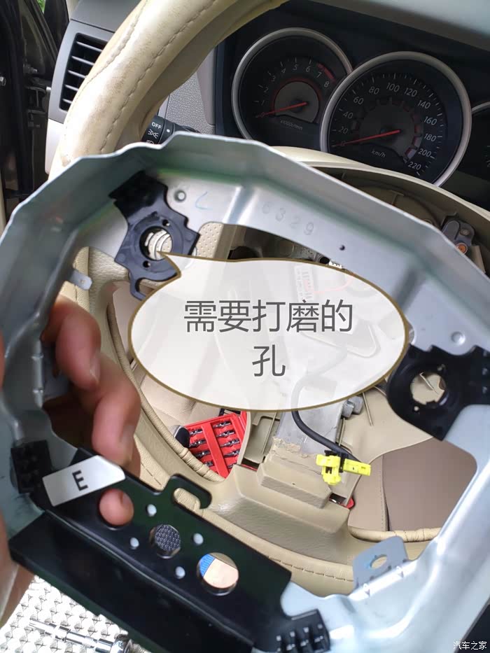 第一步这一点很重要,注意了,一定要熄火断电瓶负极,断电时间长一点,让静电余电跑跑,这点很重要,不然拆气囊就容易发生爆炸,我是断20分钟左右吧,主要是因为买工具耽误了一会时间,对了大家要准备工具有小刀,小铁搓,砂纸,内六角梅花的(中间有孔的那种),小的平口螺丝刀,越小越好大概就这些吧
