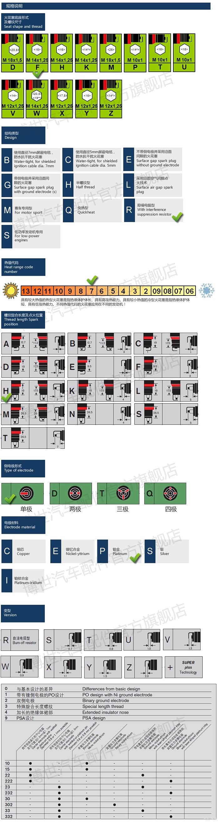下面简述不同材质的火花塞的更换周期,以及参数对应,大家按照对应选择即可