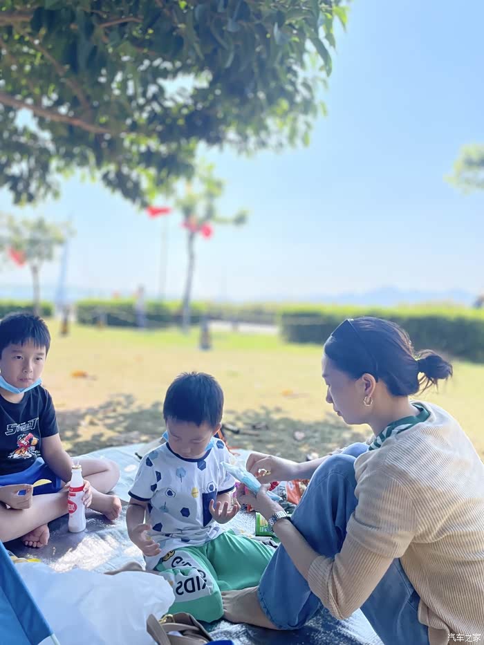 阳光。入秋之际,阳光沐浴,露营野餐,不二之选。比起原来的单纯露营,车只是个单纯的交通工具。AION Y Plus给我们增添了K吧、游戏、车上休息等娱乐休闲色彩。