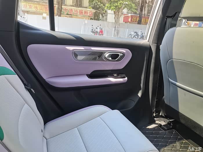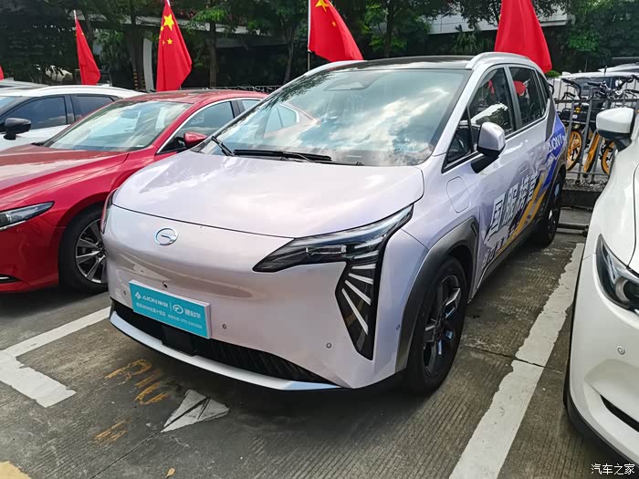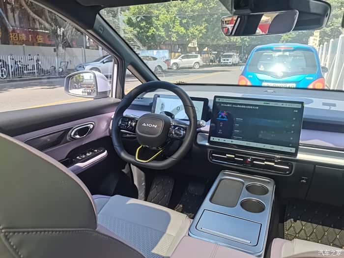 这次分配给我的体验官试驾车,紫粉色车身,适合女生开。车型外观,车头看起来,跟老款AION Y车型相比变化不大。主要是车尾部分,圆润了不少,个人比较喜欢新款外形的改动。