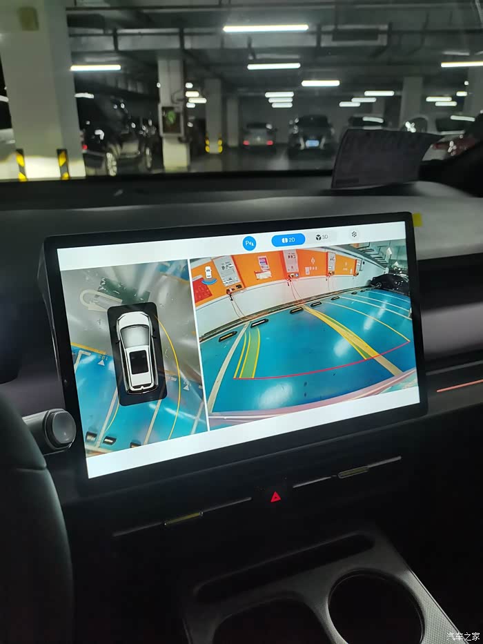 提车回家的路上,540度透明车底环视影像,让我印象十分深刻。打转向灯、挂倒档、行车间与周围的车间隙太近等等,都会自动打开环视影像,对行车安全保障很到位。尤其在地下车库光线比较昏暗的地方,环视影像的清晰度非常高,比起我现在所开的车的环视影像好太多了。