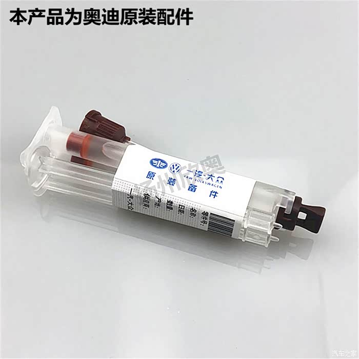 工具:瑞士军刀一把。某宝购置的“雨量传感器凝胶”,形似双管注射器。选销量最多那家即可,帕的雨量传感器也是德国的,凝胶与大众奥迪系列通用。凝胶容量足够施工两次,包装里配2个“针头”。