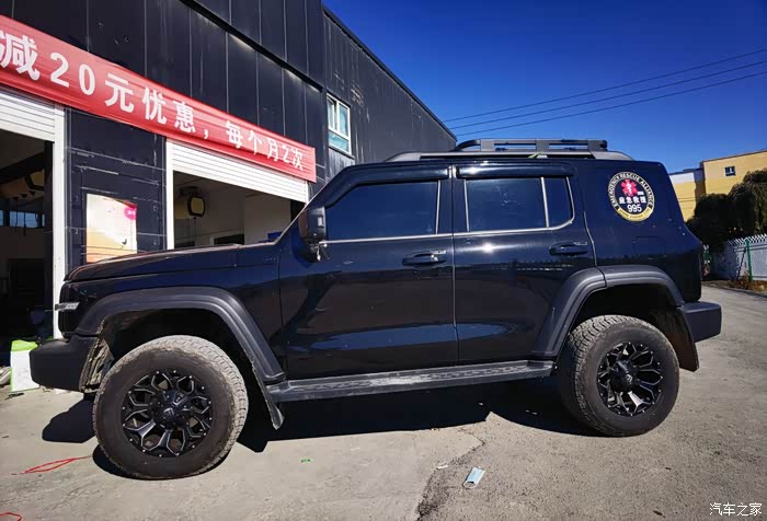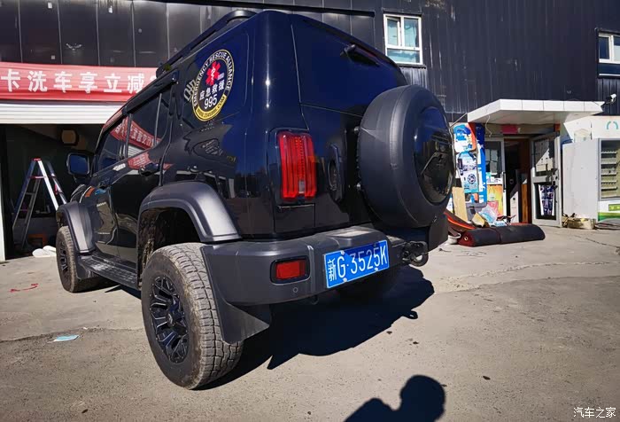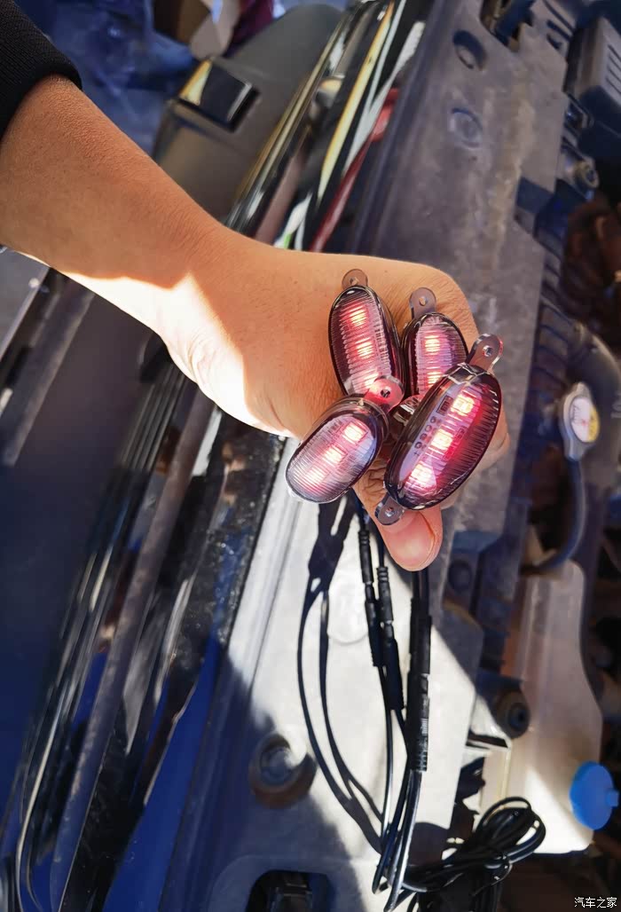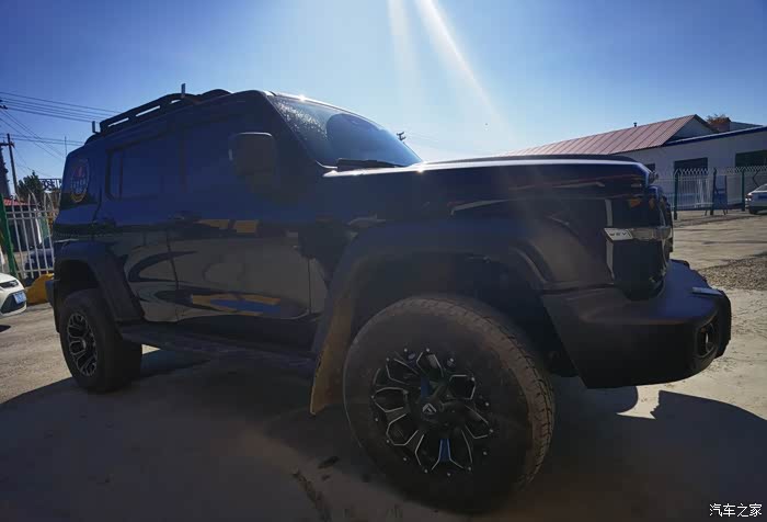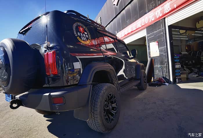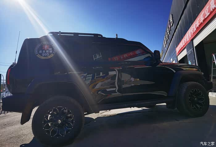 简单列个单子,黑曼巴减震,行李架,涉水喉,轮胎,轮毂,下摆臂,上摆臂,羊角,速比,进气管,副油箱,绞盘遥控器,还有一眼看就能看见的小黄灯