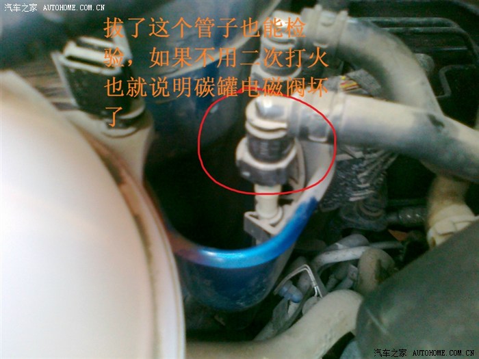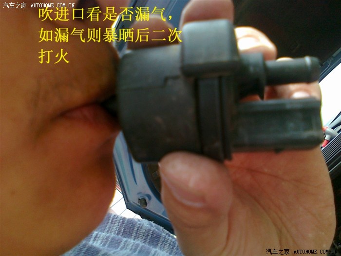 检测方法:拆下后用嘴吹进气口,如果漏气,说明已经坏掉,车辆会二次以上打火才能启动;如果不漏气,说明碳罐电磁阀完好,寻找其他原因。