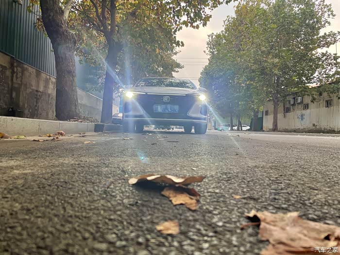前大灯点亮以后果然璀璨明亮,LED灯光的效果就是不一样。