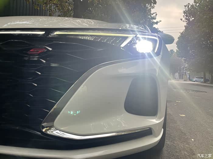 原车前大灯就是带透镜的LED大灯,如此犀利明亮。