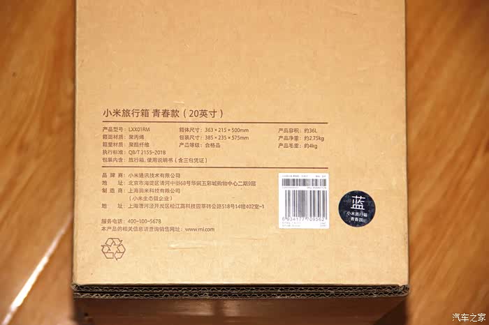 小米旅行箱青春版外包装盒