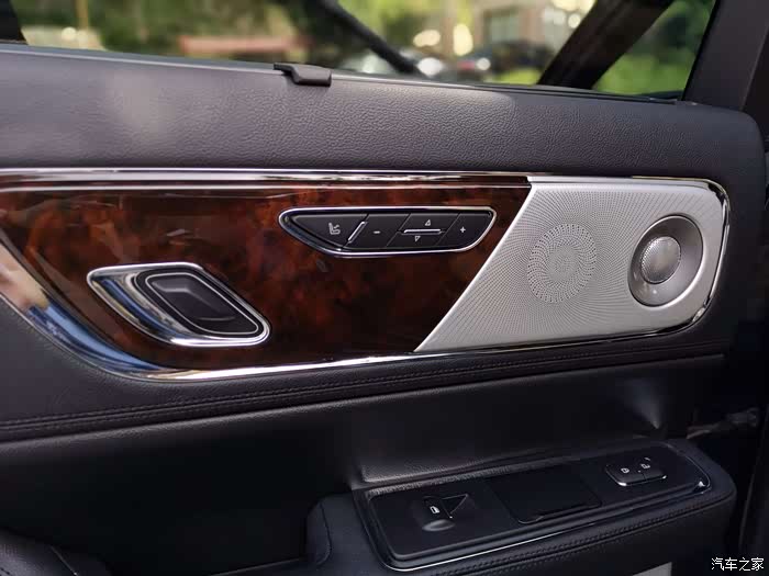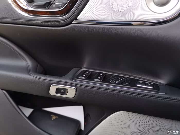 后排车门是电动调节靠背角度按钮,按摩按键,配置应有尽有。