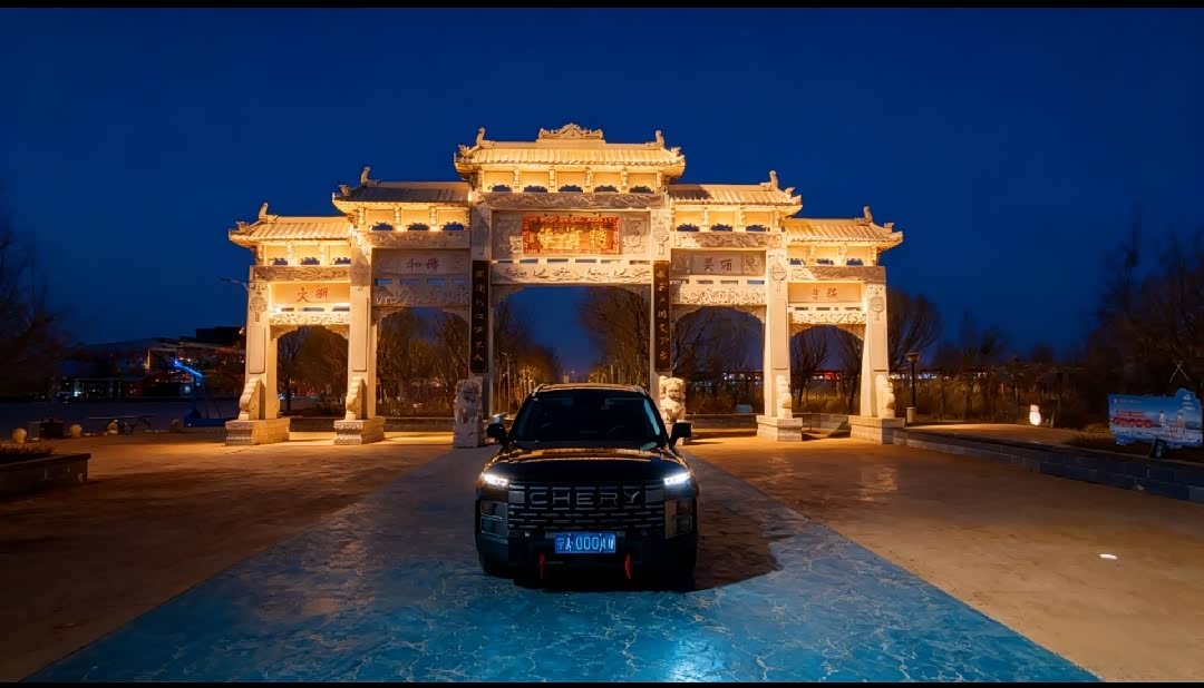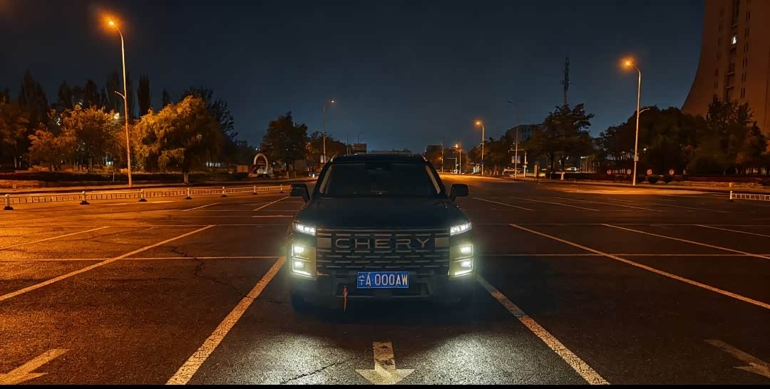 格栅中央的“CHERY”发光LOGO与大灯形成呼应,在黑暗中勾勒出品牌的辨识度,下方的雾灯区域则用柔和的漫射光,为前脸增添了几分温暖质感。