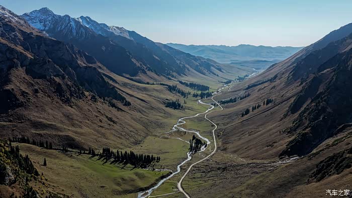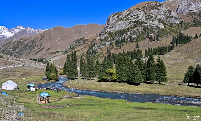逛到下午4点左右就可以返程了,因为要走独库公路去那拉提镇入住,全程110公里,大概2小时车程。独库公路这段的风景超绝,从森林河谷过渡到雪山草甸,随手一拍都是大片。路况很好,柏油路平整,就是要注意避让大货车。出发前检查下油量,中途补给点不多。另外有晕车的车友,最好有心理准备,前段弯道爬升,穿过隧道后半段就是纯弯道大下坡,嗨的一米。