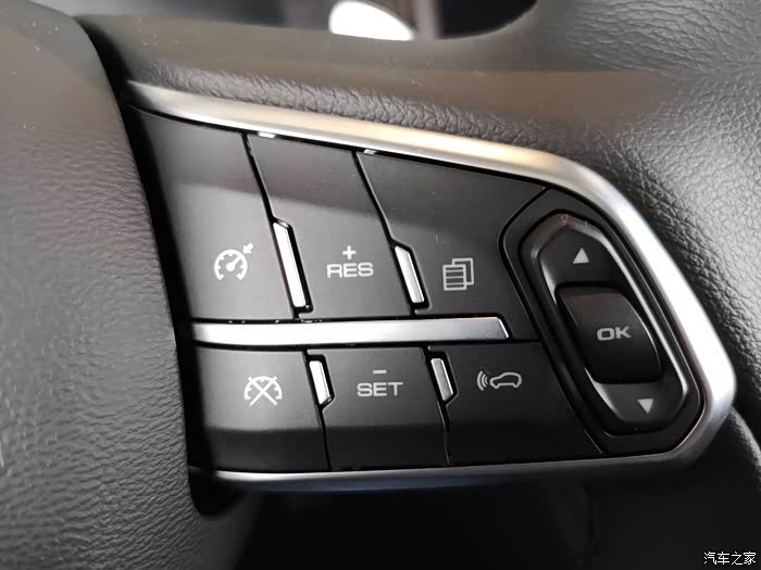 动功能方向盘,右侧组件是定速巡航和前置安全检测系统等开关键。