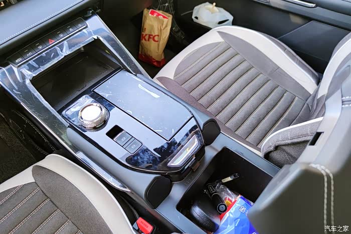 看到车子的中控台,可以看出,车子的中控台并没有很繁琐的功能布局,甚至连操控杠都是旋钮式的,空间大,而且布局也比较整洁!