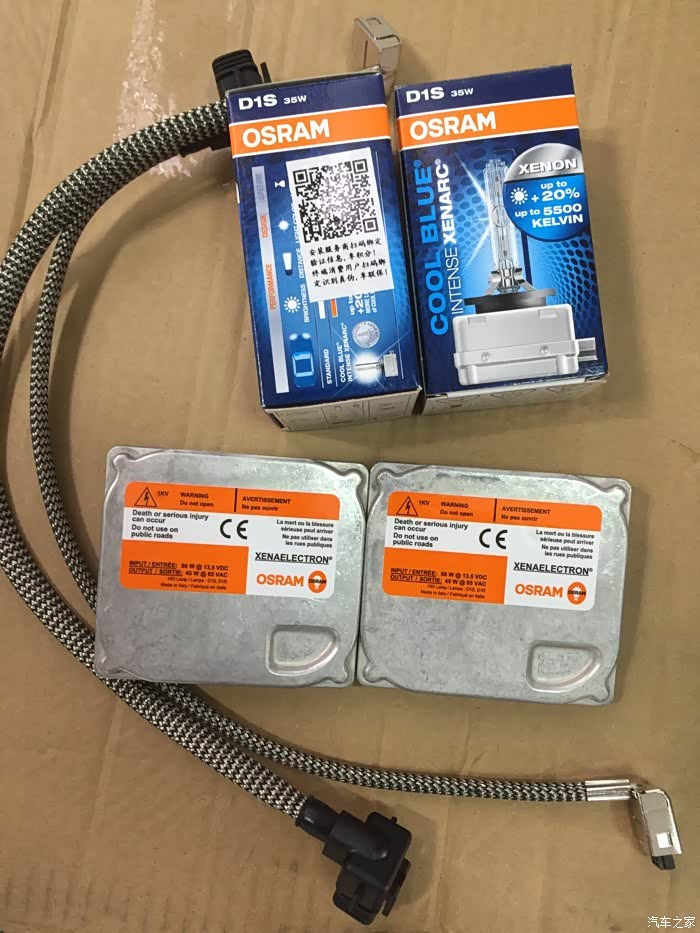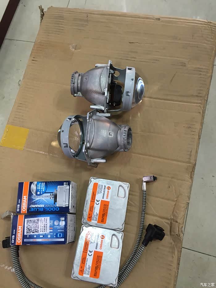 透镜套装配置:原装德国海拉5双光透镜一对原装全新欧司朗45W安定器一对原装全新欧司朗 D1S CBI 5500K一对原装全新海拉灯卡一对