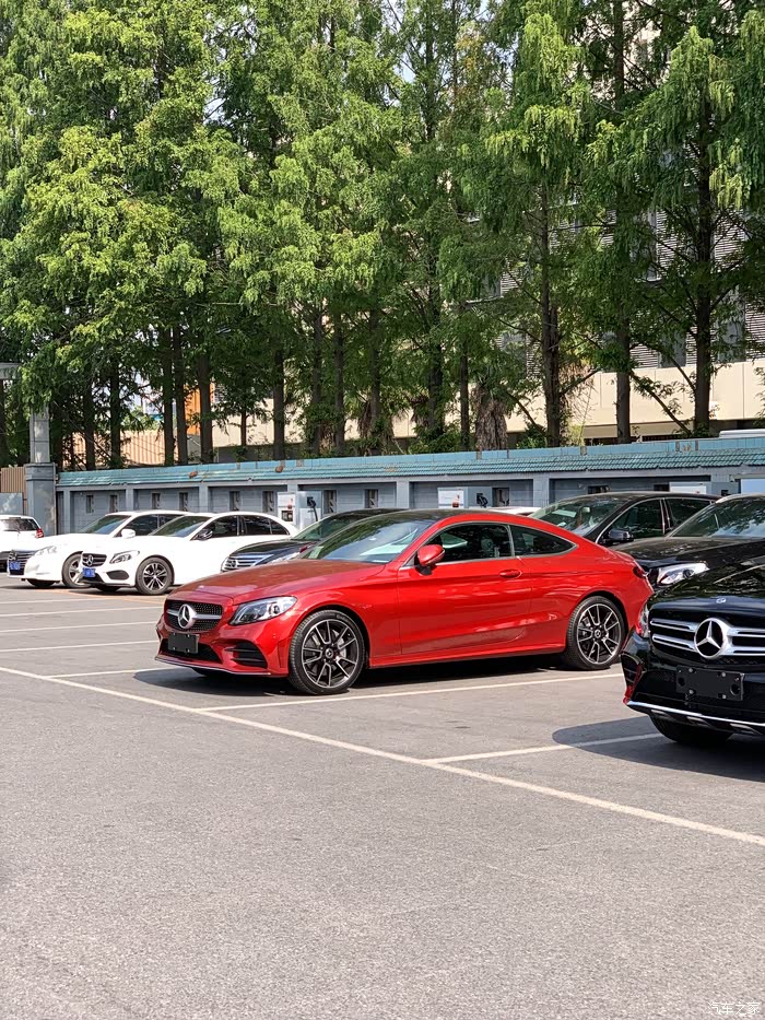 【C300 COUPE】今天写帖子是21号,在18号那天,去逛了一家我觉得比较冷门的奔驰4S店,想着先去奔驰再去趟宝马。但是还是没什么别的选择,那就还是530i吧。这一去,碰巧居然有一辆C300 COUPE的现车!激动,兴高采烈了,里里外外看了一遍,除了选装了5100的红色金属漆没有其他选装。纠结红色,毕竟男的开这个颜色,真的,有点,那个什么了。初步问了下价格和优惠还是出来了,顺路再去宝马看530i的时候和销售坐着谈530i我就已经没兴趣了,甚至庆幸没谈成。