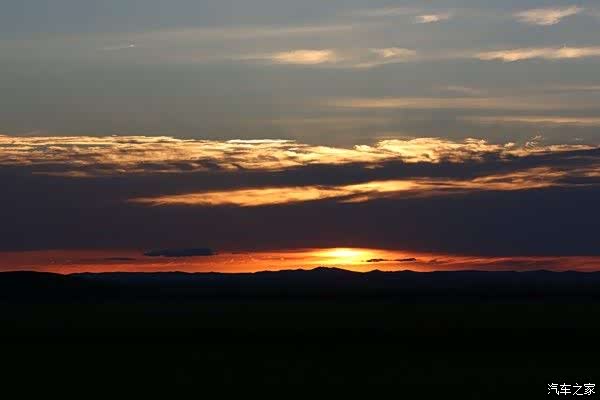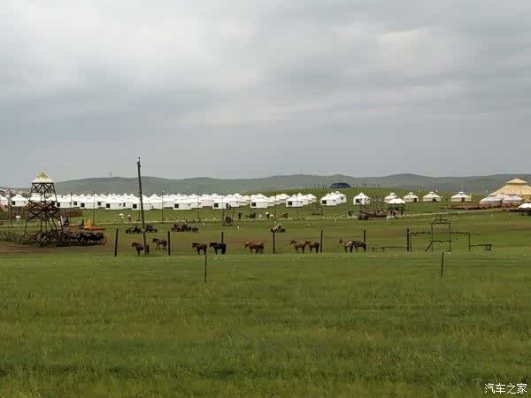 从金帐汗大草原景点出来,我们走的是海满一级公路,雨越下越大,公路两旁一望无际平坦碧绿的大草原,成群的牛羊和白色的蒙古包美极了。