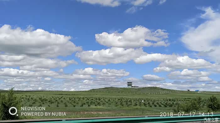 老公打开音乐将音质调到最高音符,放着金典老歌,好像只有我们俩人行驶在这高速上。11点半我们到达康平服务区,服务区环境很美又干净整洁。午餐炒了俩青菜、还有前一天的沟帮子熏鸡、点了一份米饭。午饭后在康平服务区加满油,休息了一会儿出发,过了辽宁海州收费站。马上就进入内蒙古地界儿(布敦花收费站),一路上的景色特别迷人,蓝蓝的天上白云在的飘着,好像是顽皮的孩子学画画的随手涂鸦,两旁的地面被地毯式的青草铺盖着,整齐碧绿碧绿的柏杨树竖立路边,车内的配着萨克斯音乐和金典老歌,我用手机一直录着窗外的美景,一段段的抖音视频效果特棒,怕内存不够用,每天晚上都将手机里的图片导入硬盘里。
