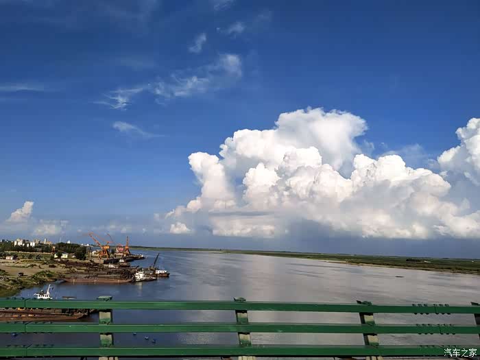 刚下过雨的天,路上更干净,空气特别清新,吹着清凉的微风,听着舒缓的音乐,清清的杨树向后倒去。路边有菜农新鲜的小西红柿,红的,绿的、黄的、紫的,还有玉米、花姑娘(当地的一种水果)和甜瓜,刚从地里摘的带着露水的新鲜蔬菜,我们每样都买了一些。经过大庆市大桥,桥的两旁是湿地公园,好美!可惜大桥上不能停车,只好在车内录下不太理想的湿地风景。