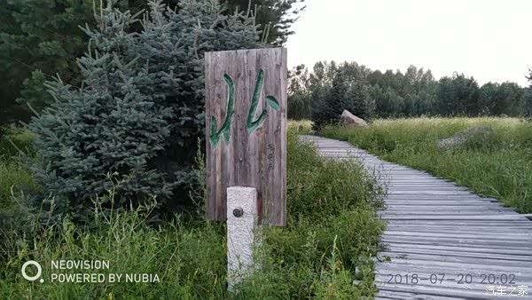 这是通往丛林深处的一条木板路,由木吊桥、木板路组成,蜿蜒曲折。一路上我们发现了无数的“北”字,各种字体的“北”字,有的写在树上、有的刻在石头中,有红色,有黑色,我们寻找着北,不远处“ 我找到北了”那块石碑前。我和老公拍照留念。