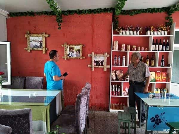 我们游完湿地公园11点多。走出风景区,已经是中午吃饭的时候。在路旁看见的一家农家小院娜佳家庭院(小餐馆),停车走近大门往里看,整个小院清新干净整洁,院内种有4颗树长满了黑色的小果儿,西边是郁郁葱葱新鲜的蔬菜,门口旁边种的一小片粉红色小花,阳光照射在凉嗮的黑果儿和整个院子里,让人有回到家的感觉。迎接我们的是一位和善阿姨,走进房间又一次让我们感到好温馨,装饰风格优雅又不失当地特色,墙面是橙红色,相框是用原生态白桦木做的,让人感到清新别致,大叔给我们泡了一壶俄罗斯茶,老公送给大叔家乡香烟。