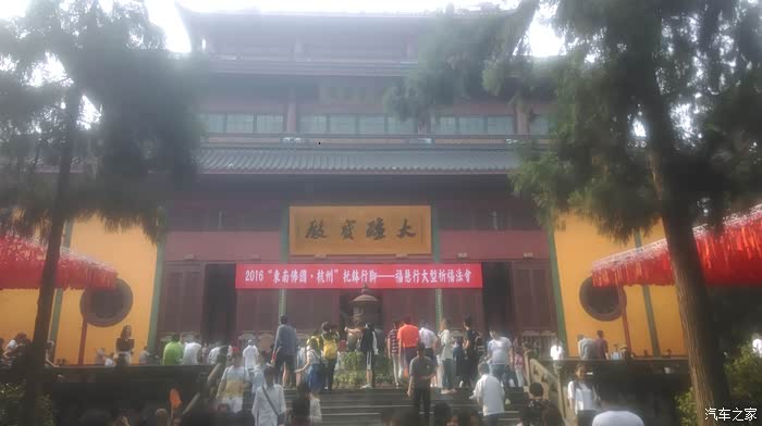 乌啼霜滿天,江枫渔火对愁眼,姑苏城外寒山寺,夜半钟声到客船。”的旷世妙诗,将规模并不太大的寒山寺,传唱千古闻名中外。我们正巧赶上寒山寺本佛纪念大会,近千人的信众居士齐居寒山寺,黄幡在场地两旁整齐排列,穿着佛袍的信男信女盘坐两旁,大方丈在台上颂经诵读祭文,场面很是壮严肃穆。