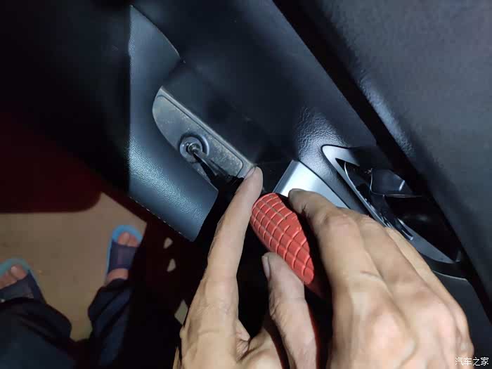 没有螺丝了,用寸劲从上面边缘拆下内饰板