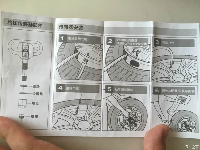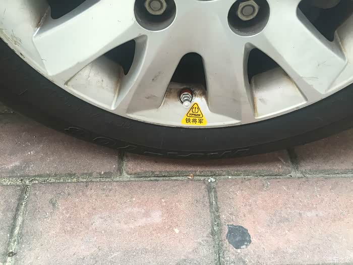安装完成一个,小工给贴上附带的铁将军TPMS胎压监测标识,一定要注意:贴这个东西不是装X,也不是好看,而是以后补胎需要拆装轮胎时,工人看到这个标识,知道里面有胎压传感器,扒胎机扒到此处时停一下绕开传感器,避免损坏传感器!!!建议安装内置胎压监测后,以后补胎时一定记得提醒工人里面有胎压传感器!!!