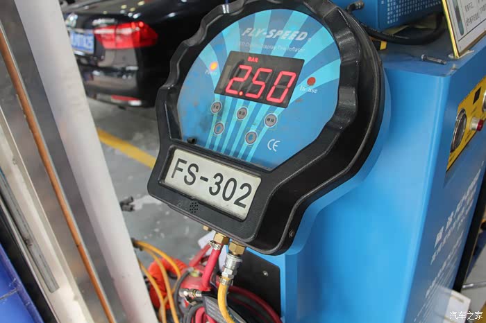 店里的充气机比较智能,设定气压2.5bar,到达设定胎压后自动停止