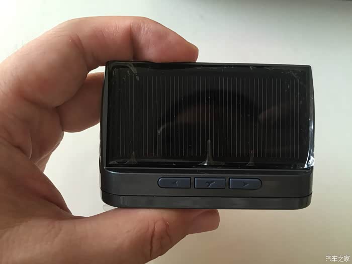 上面是大面积的太阳能充电板,三个按键,中间的为设置键,两边为选择键