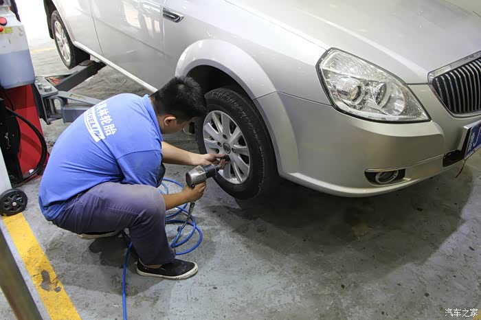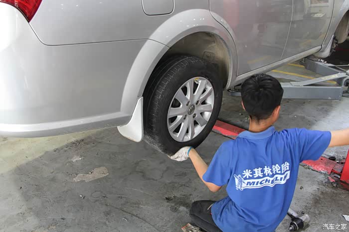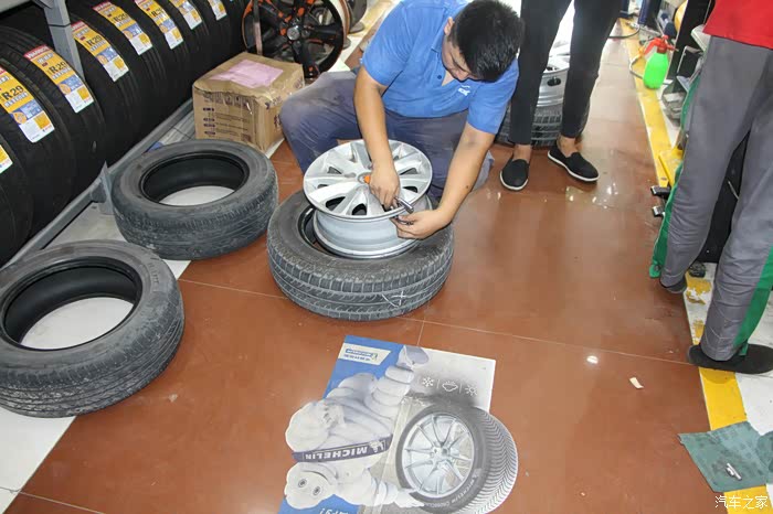 提前联系了几个轮胎店,要价80-100,这家轮胎店要60,然后就过来安装了,结果说电话里报错价格了,不过小哥不错,最后还是按60收的。店面比较大,有三个工位,左边的银色凯越就是我的座驾,准备安装。店面的地址和电话信息已打码。