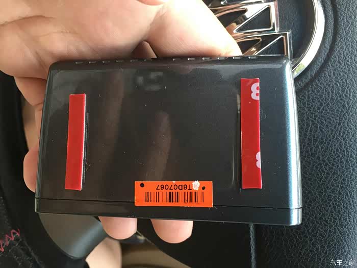 准备固定在中控台上,配带的胶条可能是忘在安装店了,正好自己有3M胶,截了两小段贴上