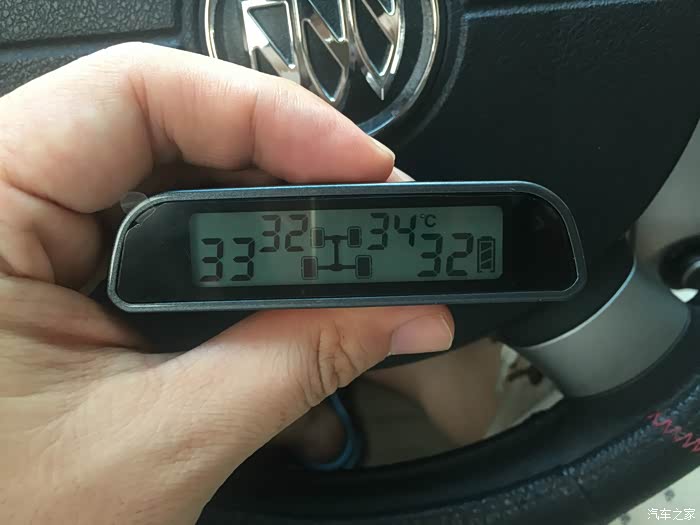 短按设置键手动切换胎压和温度信息,有些其他品牌的胎压监测是压力和温度同屏显示,无需切换,感觉同屏显示更方便