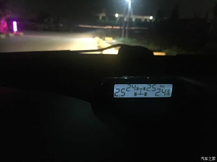 晚上准备出去溜一圈,屏幕有自适应背光,这点很人性化,很实用,出门前冷车胎压2.4bar